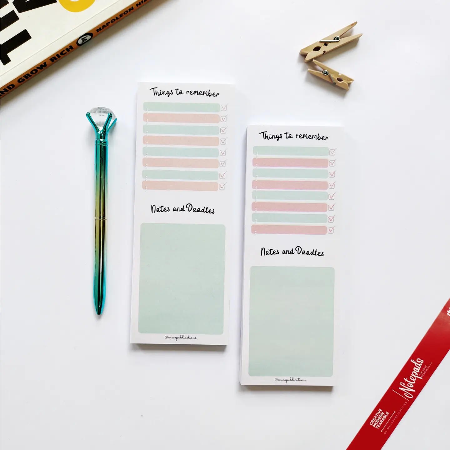 ✔ 80 tear-off sheets, 90gsm fine page, glue binding, and 4 different designs