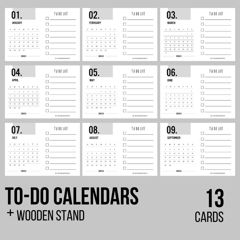 - 13 Calendar Cards ( December 2023 till end of 2024)
