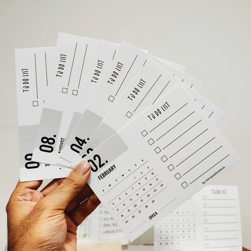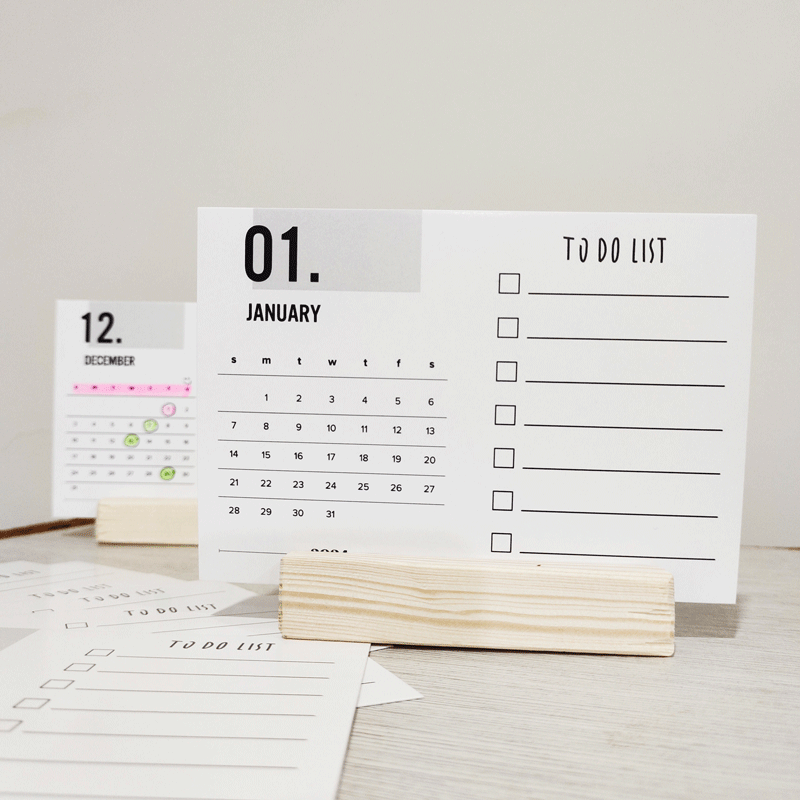 Each card in To-Do Wooden Desk Calendar features a clean and easy-to-read calendar layout on one side, allowing you to stay on top of important dates and appointments effortlessly. The other side transforms into a to-do list, where you can jot down your monthly goals and aspirations. Imagine having a constant visual reminder of your objectives, right at your fingertips on your desk.
